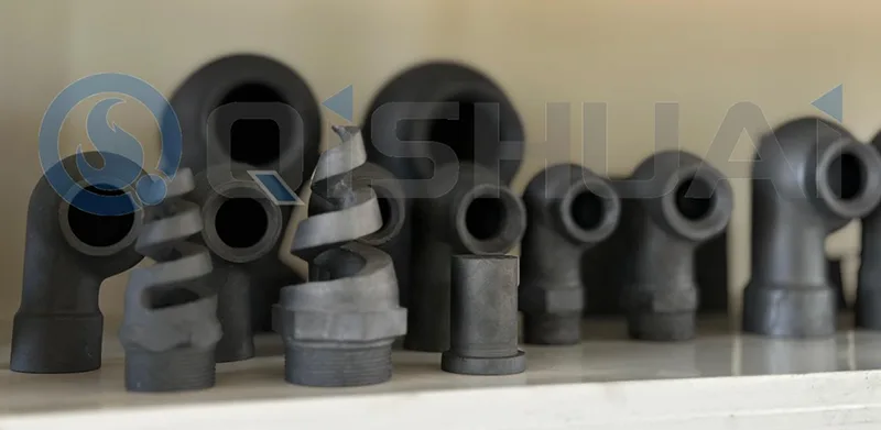 Munstycken av kiselkarbid finns ofta i dammborttagning, spraybeläggning, avsvavling och förbränningssystem som slitstarka delar. Förutom de lagerförda enkla profilmunstyckena kan Qishuai även uppfylla kundernas krav genom att designa nya munstycken med modifieringar av sprayvinkel, flödeshastighet och korrosionsbeständighet vid behov. SiC förlänger utrustningens drifttid och sänker livstidskostnaden.
