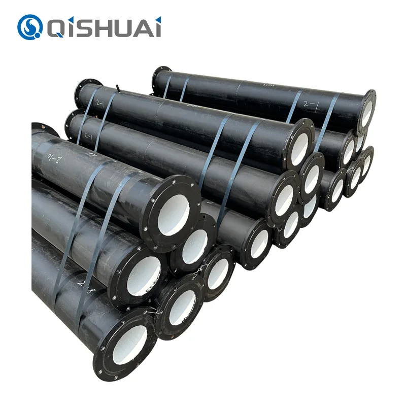 Det slitstarka keramiska fodrade röret från Shandong Qishuai Wear-Resistant Equipment Co., Ltd. består av ett ytterhölje av höghållfast metall och ett höghållfast keramiskt innerfoder som är nära kombinerade. Det yttre metallhöljet ger stabilt stöd för att säkerställa att rörledningen har bra kompressions- och slaghållfasthet. Det keramiska innerfoderet utövar sina fördelar med ultrahög hårdhet och slitstyrka för att effektivt motstå skurning och slitage av material. Utseendemässigt är rörledningens yta slät och platt, och anslutningsdelarna är exakt utformade för enkel installation och anslutning.